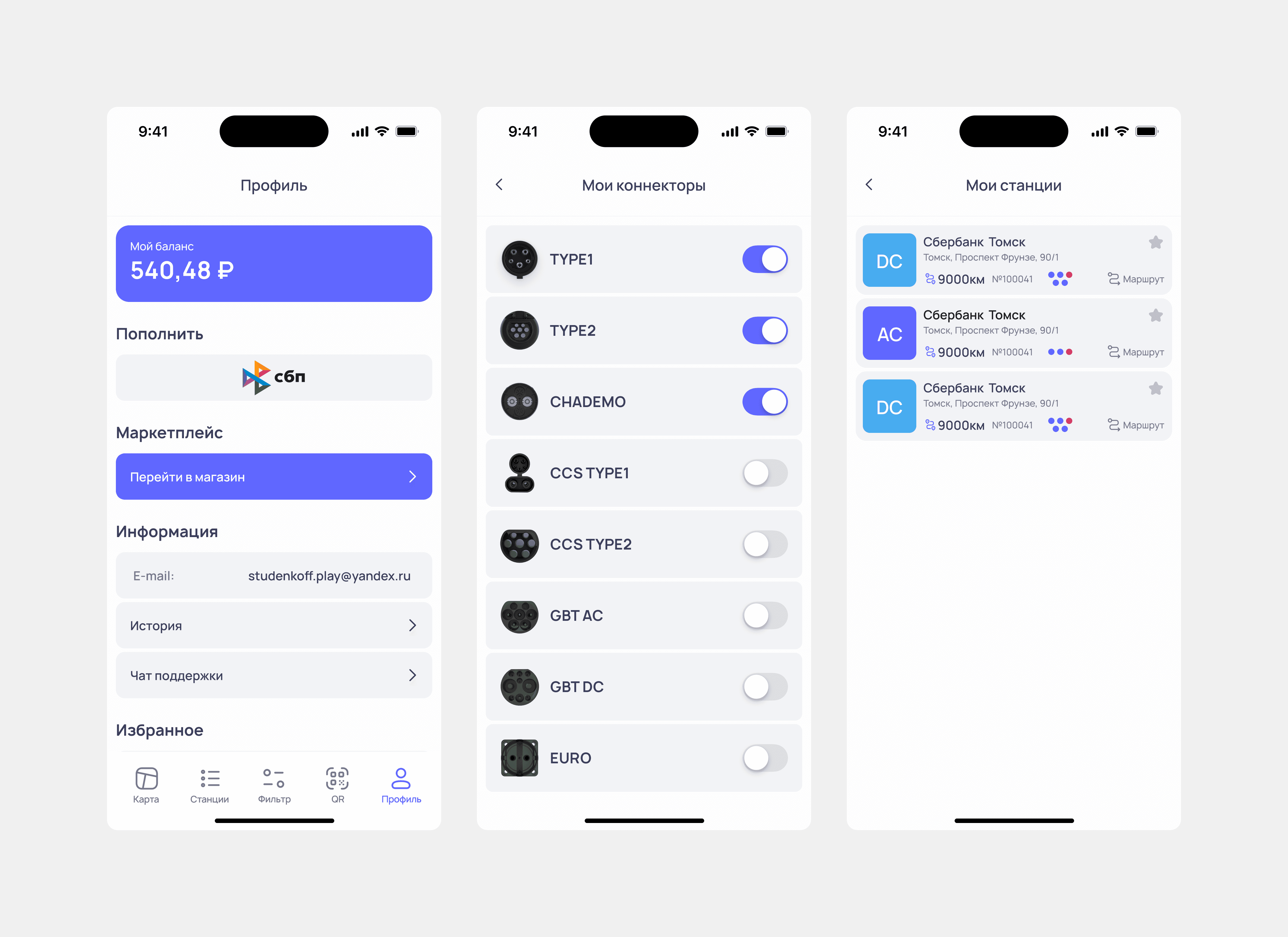· Простота покупки и бронирования зарядки.