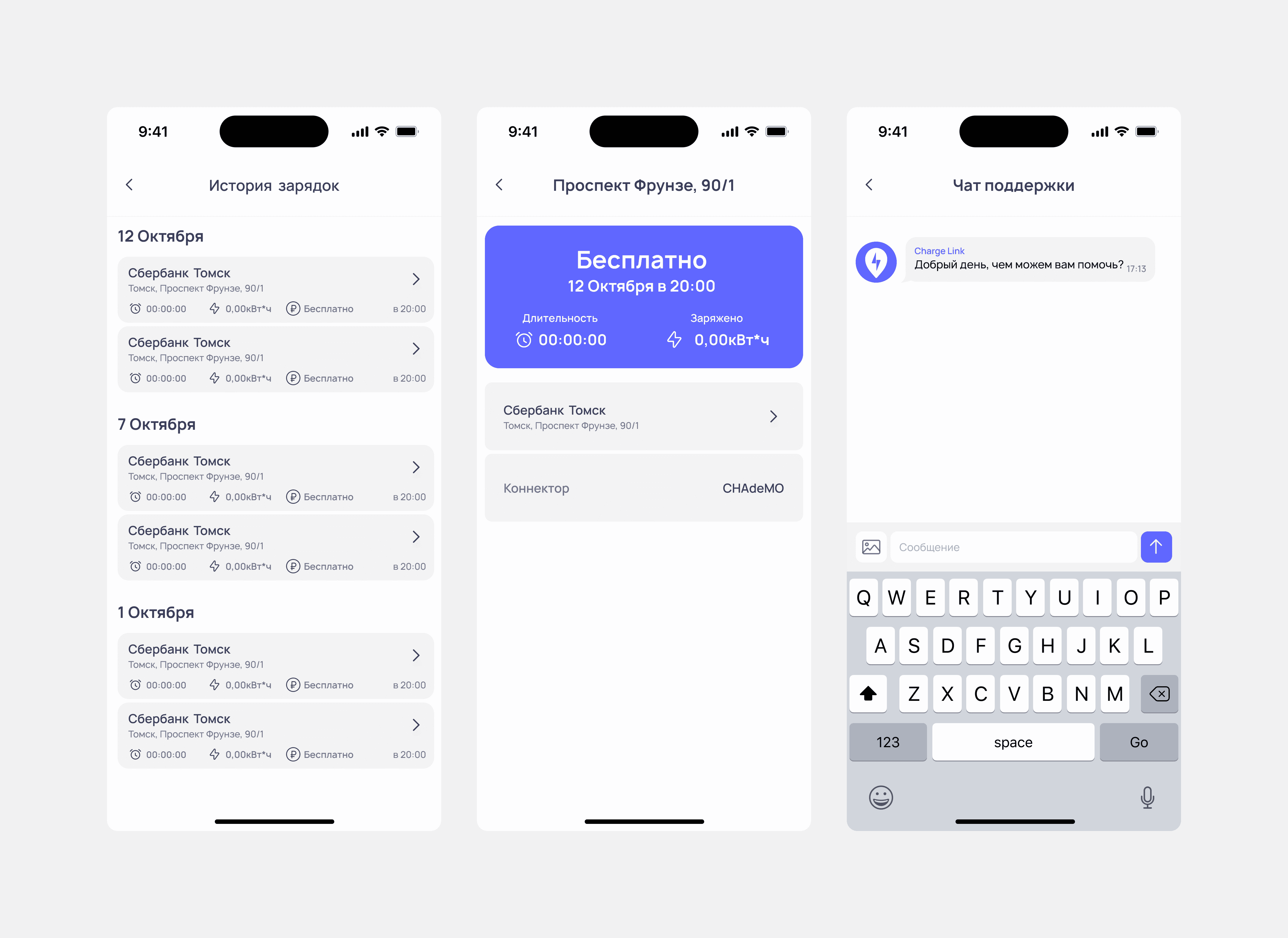 · Информативное отображение данных при зарядке (мощность, время, стоимость заказа,