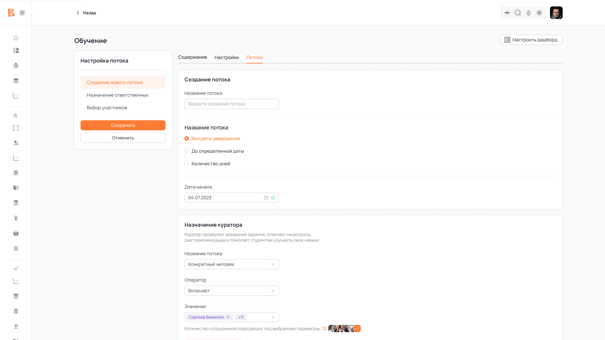 13. Назначение множества кураторов на один курс и поток, не через создание отдельной роли: