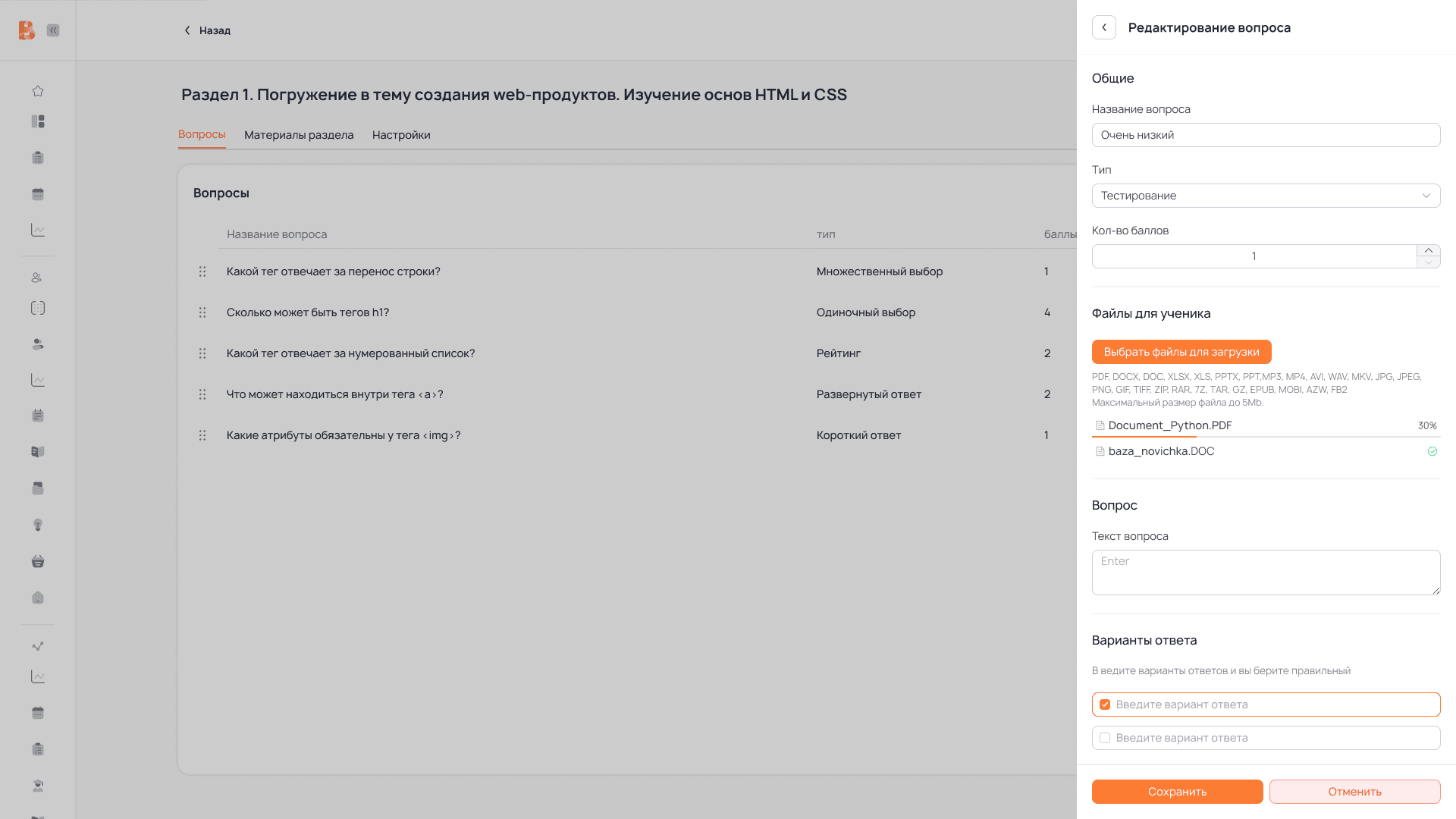 Разработка нового функционала сервиса «Обучение»