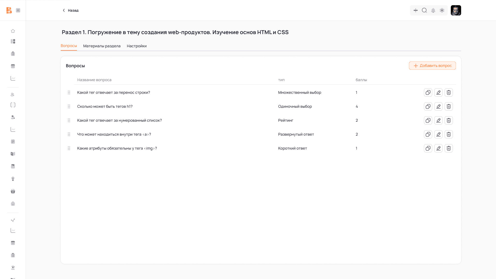 10. Типы материалов для курса: