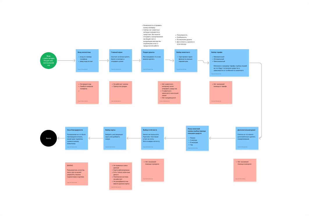Сначала выделил ключевые моменты для проектирования. Составил карту пользовательского пути и расписал возможные проблемы на каждом этапе